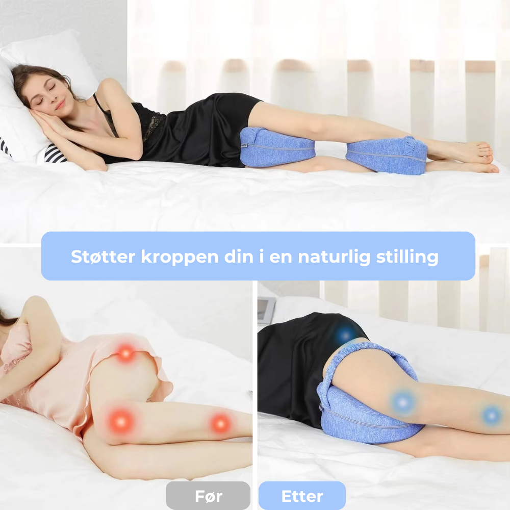 DreamSleepz knepute er utviklet for å redusere trykk på leddene og forbedre sovestillingen din. Dens ergonomiske design sikrer optimal justering av ryggrad, hofter og knær – og lindrer ubehag der det faktisk oppstår.